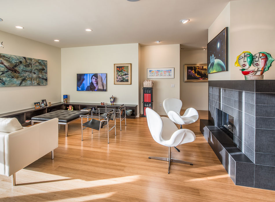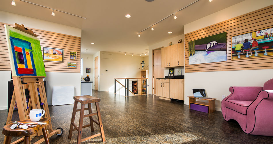 - Upper Level: Art studio, full bath, upper deck, elevator.